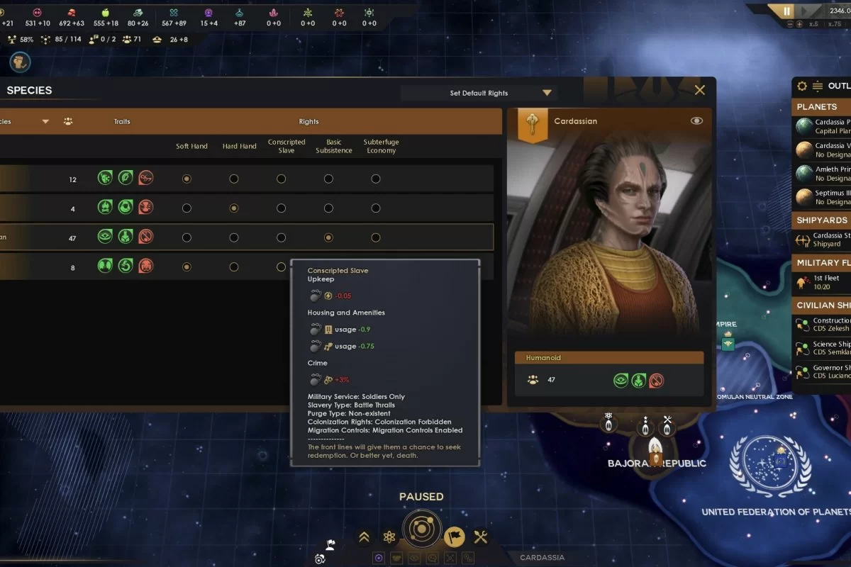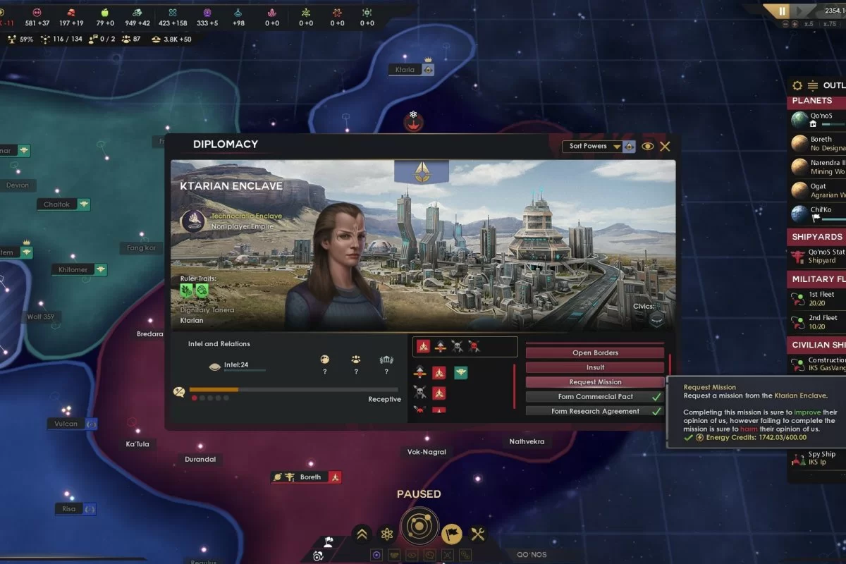 Геймплей отчасти напоминает игру под названием Stellaris: разработчики явно вдохновлялись именно ей, но при этом им удалось внедрить ряд интересных механик. Самым запоминающимся нововведением стала цепочка квестов, где каждое задание делится на множество разных шагов благодаря чему игроки последовательно знакомятся с новыми функциями и стараются интегрировать их в свой игровой стиль.