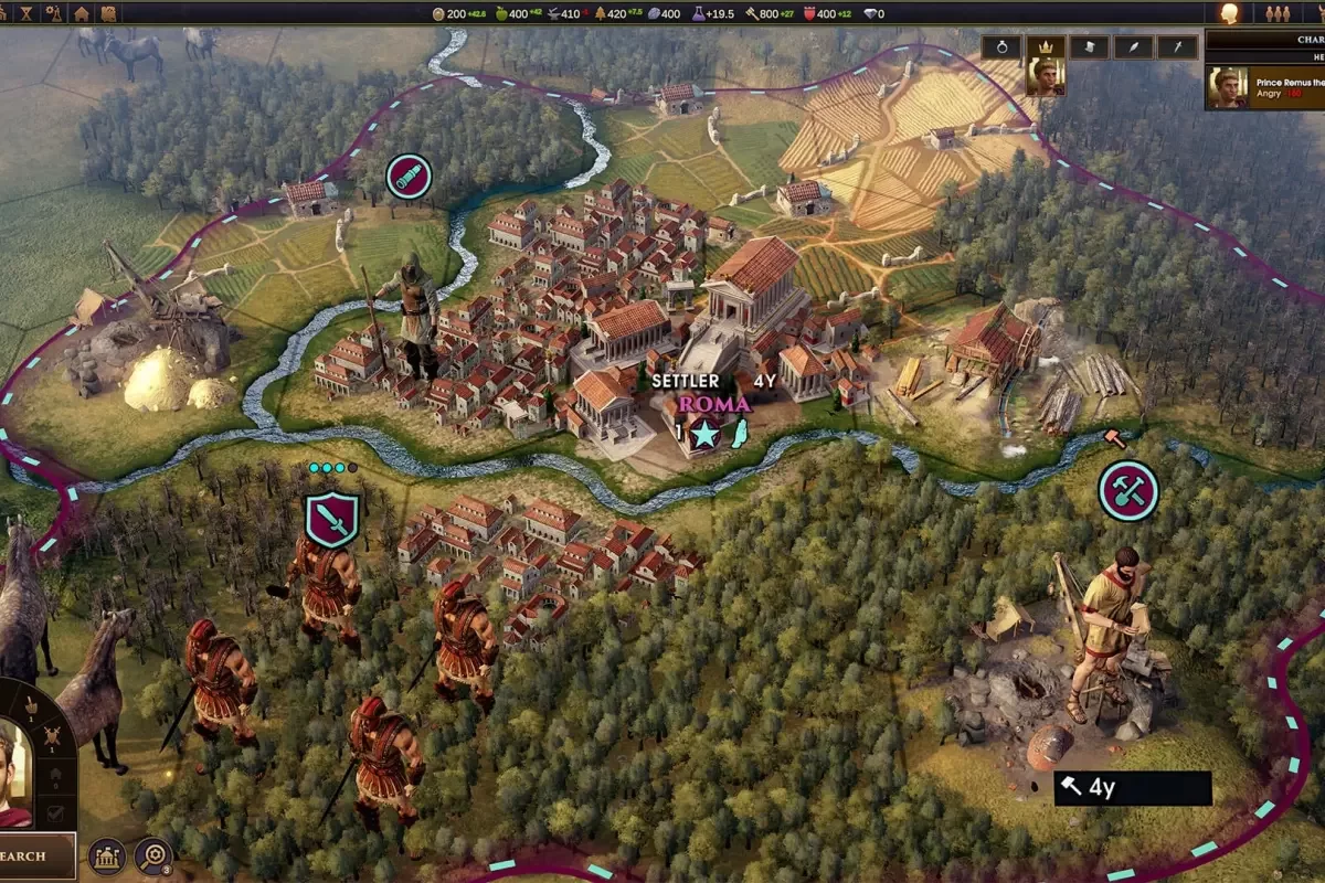 • Территории. Города образуются из связующих блоков территории — тут и городской центр, и деревенская местность. На каждое улучшение требуется отдельная плитка, в том числе на чудеса света и городские постройки, такие как усыпальницы, амфитеатры и гарнизоны. Территория расширяется, смотря в каком месте карты игрок строит улучшения и тренирует специалистов.