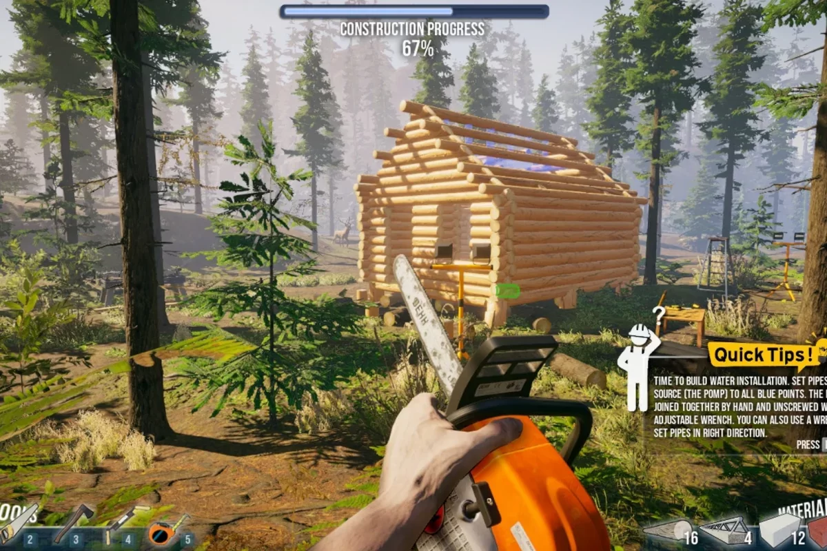 В распоряжении игрока — сотни строительных материалов и десятки инструментов, которые нужно изучить и правильно применять. Каждый проект предлагает свои вызовы: от суровых климатических условий до специфических требований к постройке.