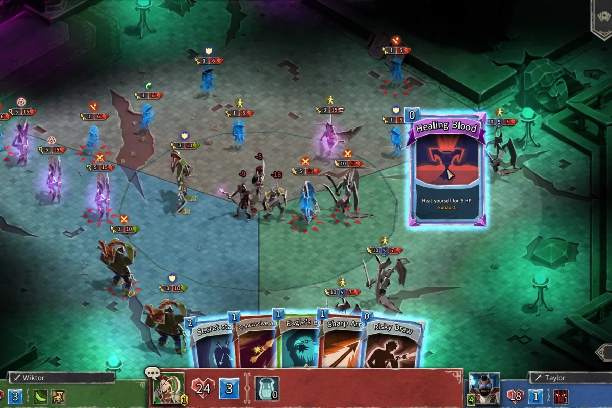 Ключевым отличием проекта стало то, что положение противников на арене будет иметь ключевую роль. Разработчики сконструировали уровни таким образом, чтобы каждый возможно было пройти без единой потери, а вам предстоит отыскать этот способ. Экспериментируйте с возможностями находящихся в вашем распоряжении игровых персонажей, а также создавайте уникальные колоды под ваш стиль игры.