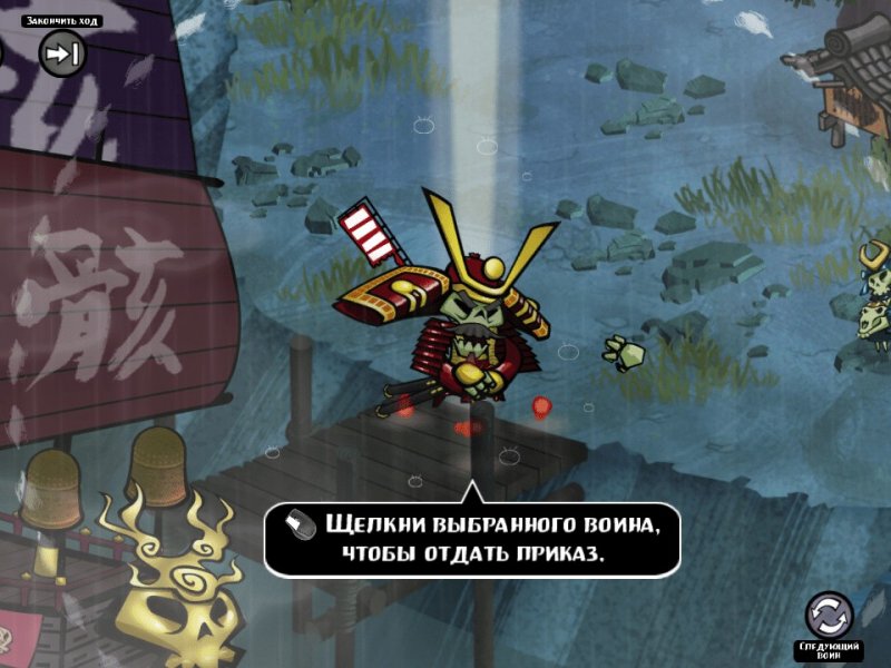 Череп Сёгуна – аркадная стратегия с мёртвыми самураями, воюющими в своём царстве вечности. Skulls Of The Shоgun - прекрасная игра, где нужно просчитывать каждое действие, бой в любой момент может обернуться как в вашу сторону, так и против. В игре присутствуют некоторые объекты интерьера, которые помогут вам низвергнуть своего врага, будь то водоёмы, толкнув в которые оного, тот моментально погибнет или же колючки, от которых враг получит дополнительный урон, а то и вовсе отбросит свои костяшки в сторону. Но стоит помнить, что палка о двух концах, противник тоже не глуп и при любой возможности использует её. По сути, игра довольно сложная, особенно для новичков. Но ничего, дерзайте, хардкорщики...