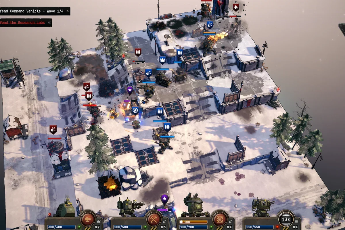 Геймплей сочетает тактику в реальном времени и элементы рогалика. Каждая карта — небольшая, но насыщенная событиями арена, где враг наступает волнами. Управляйте мехами с разной специализацией: баллистика разбивает тяжёлую пехоту, огнемёты зачищают толпу, а взрывники оставляют после себя лишь дым и обломки. Пилоты тоже играют роль — с уникальными умениями вроде прыжков, минных ловушек и защиты союзников. Главное — защищать транспорт: потеря фургона с ЭМИ = конец миссии. Победа же даёт ресурсы, которые можно вложить в апгрейд техники и прокачку бойцов на базе.