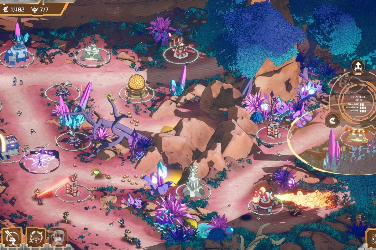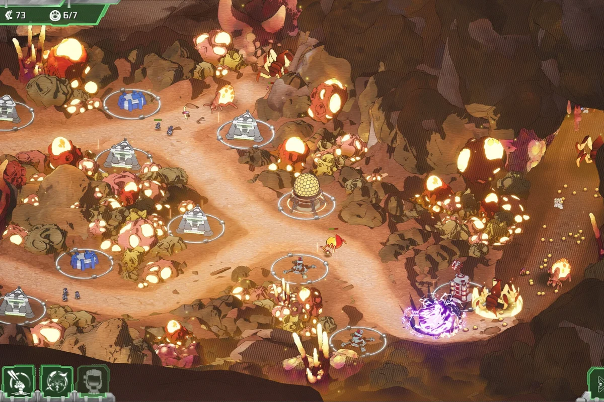 На «лёгком» волны запускаются вручную. На «хардкоре» – одна жизнь, минимум наград и запрет на перераспределение талантов. Особые уровни с «рейверами» требуют полной перестройки обороны: щиты, телепортация, нестандартные маршруты.
