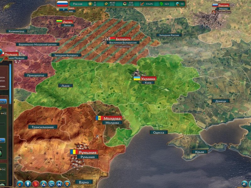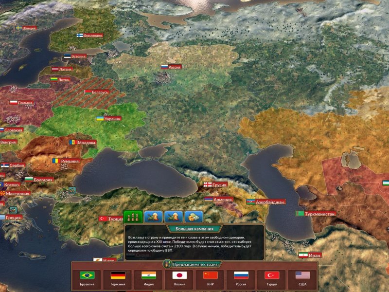 Выберите страну и приведите ее к мировому господству в различных игровых сценариях.