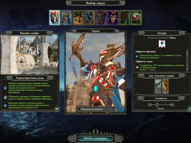 Принц Тирион, Защитник Ултуана, правит высшими эльфами, которые отчаянно пытаются стабилизировать Великий вихрь, бушующий над их континентом.