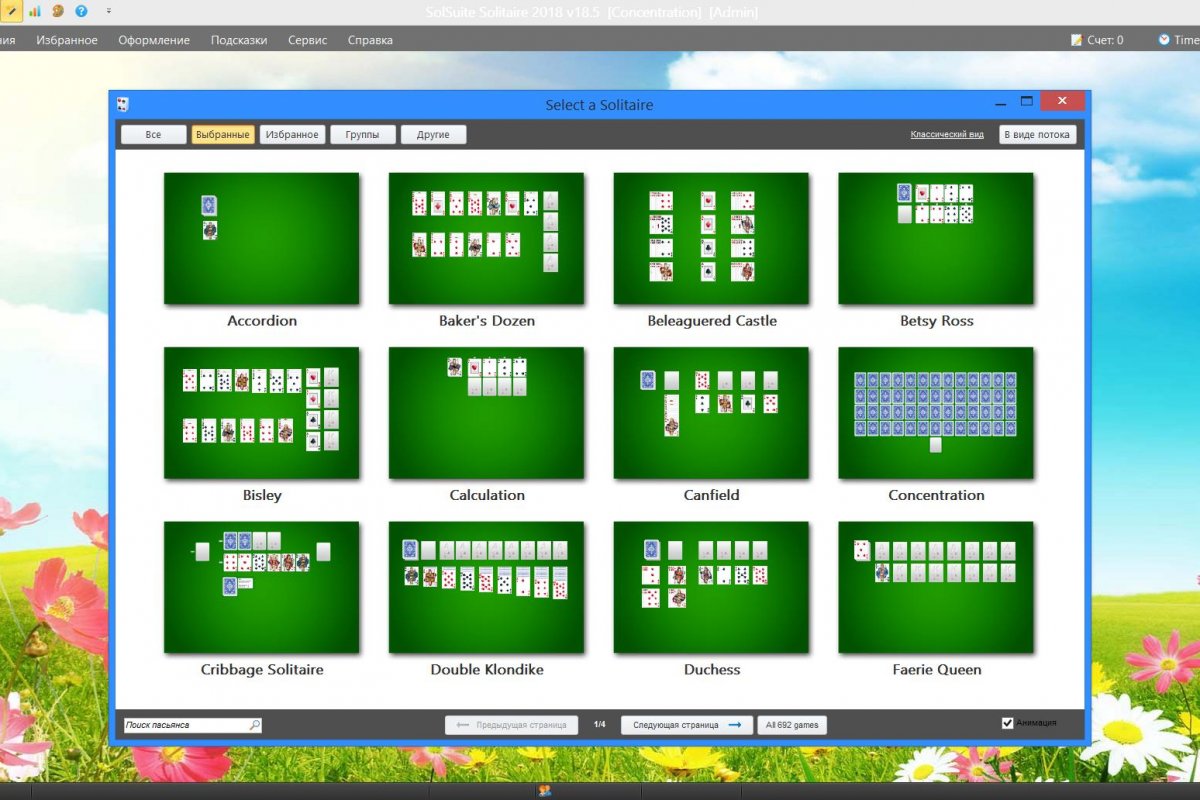Описание:SolSuite - сборник, содержащий несколько сотен различных игр, в число которых, входят практически все разновидности пасьянсов. В число основных особенностей программы входит наличие интерфейса обладающего максимальными возможностями для пользовательских настроек, причем он позволяет настраивать как вид окна программы, так и внешний вид карточной колоды. Программа также обладает превосходной графикой, возможностью устанавливать собственные правила, производит ведение подробных статистических данных и протоколов. Присутствует справочная информация, в которой содержаться данные о количестве используемых в различных играх колод, средней продолжительности игры, вероятность выигрыша, включая данные о его зависимости от случая и сложность игры.