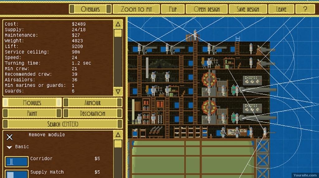 Описание:Проектируйте стимпанковские пиксельные дирижабли из модулей, и покоряйте небо! Корабли в игре показаны в разрезе сбоку, а их модули управляются членами экипажа. Во время битвы игроки дают указания небольшому флоту - располагают свои корабли, таранят и берут на абордаж другие. Корабли и ландшафт полностью разрушаемы: они могут загореться, взорваться, разваливаться на части и падать. Также игроки могут сражаться друг против друга через Интернет или по локальной сети. Корабли очень детализированы, полны воздушных моряков, каждый из которых выполняет свою задачу, как муравьи в муравейнике. Все это игрок видит в разрезе сбоку. Выбор игрока при проектировании корабля имеет решающее значение, немалая часть игры состоит в эксперементировании в проектировании кораблей, продумывании тактик.