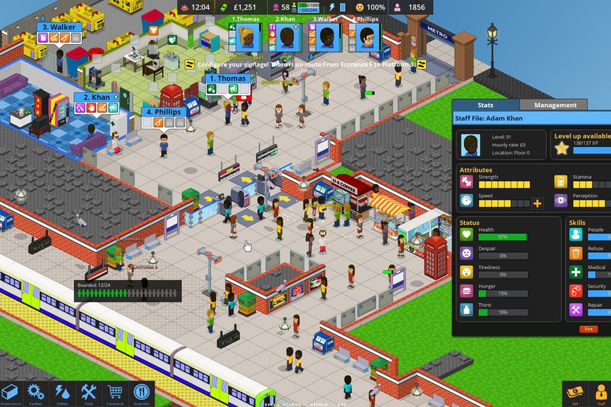 У пассажиров есть потребности, как и у нас с тобой. Опасности плохо работающей станции - задержки, жара, грязь, крысы, будут влиять на душевное состояние пассажиров и репутацию вашей станции. Остерегайтесь хулиганов и карманников, которые попытаются сорвать вашу работу!