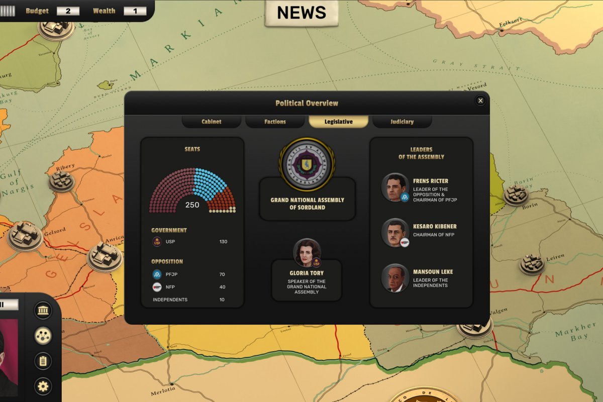 В ходе прохождения игры вы должны будете постоянно общаться с самыми разными личностями. Это и политики внутри страны, и политики из других стран, и министры, и многие другие. С каждым вам придется найти общий язык, с кем-то заключить договор, кого-то подкупить, а кого-то и вовсе уволить. Вариантов много, и каждый отдельный случай будет сказываться на жизни всей страны.