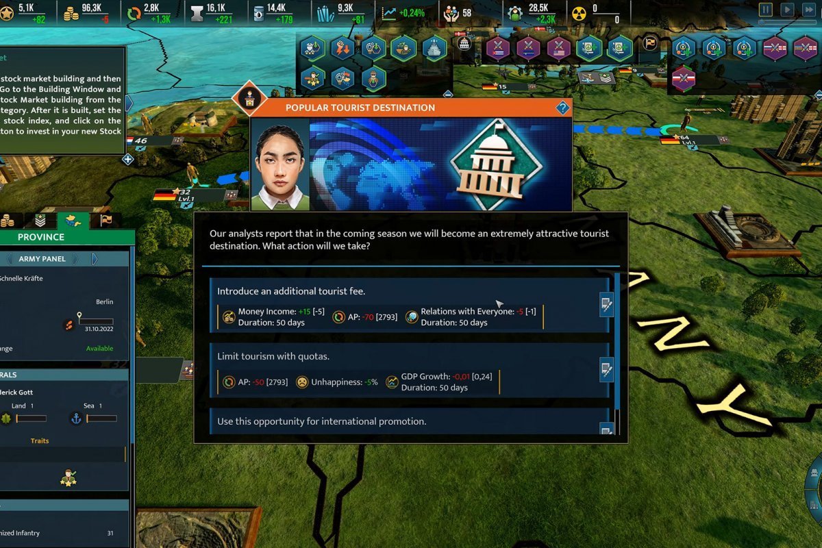 Внешняя же политика не ограничивается только ведением переговоров. Придется, во-первых, заниматься налаживанием экономических и торговых отношений с другими странами, что не всегда легко. Придется найти, что предложить, чтоб попросить что-то взамен, начать торговать ресурсами, и не только. Во-вторых, война – она теперь не так проста, как кажется. Вам придется и армией управлять, и генералов прокачивать, и шпионажем заниматься. Ну а в-третьих, дипломатия – тут уже и вовсе столько направлений и задач, что трудно и представить.