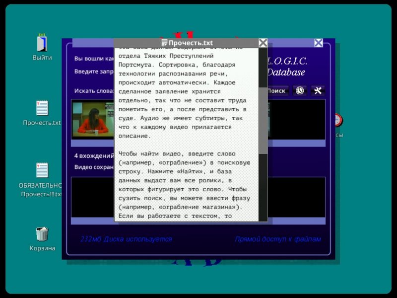Описание: Сэм Барлоу, сценарист и дизайнер игры Silent Hill: Shattered Memories, готовит новую инди-игру под названием «Her Story». Игра представляет собой криминальный роман с нелинейным повествованием и построена на просмотре различных псевдодокументальных видеороликов из полицейской базы данных, на которых записаны допросы женщина из Британии о её пропавшем муже. Допрашиваемую сыграет Вива Сайферт (Viva Seifert) — актриса и вокалистка музыкального коллектива Joe Gideon and the Shark.