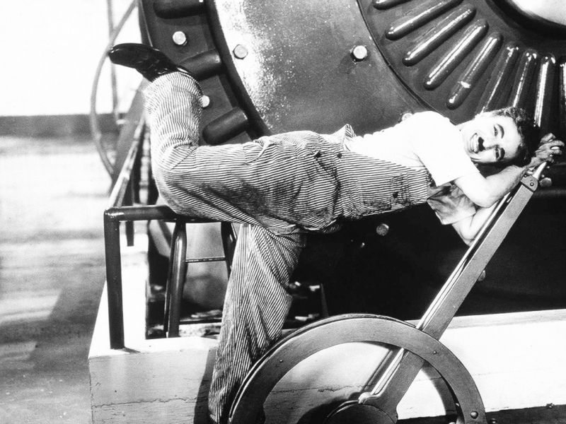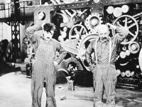 Описание: «Новые времена» - это эмоциональный, выдержанный в комическом ключе, отклик на перекосы машинной эпохи. Маленький Бродяга не желает быть «винтиком» в огромной мега-машине промышлен...