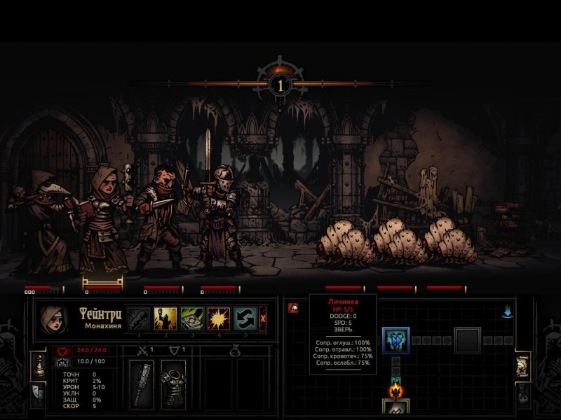 Описание: Darkest Dungeon — сложная пошаговая ролевая roguelike-игра с готической атмосферой, в которой приключения персонажей сказываются на их душевном здоровье. Вам предстоит собрать, обучить и возглавить команду героев, у каждого из которых есть свои недостатки. Команду нужно будет провести по жутким лесам, опустевшим заповедникам, обрушенным склепам и другим опасным местам. Сражаться придётся не только с немыслимыми врагами, но и со стрессом, голодом, болезнями и непроглядной тьмой. Раскрывайте странные тайны и отправляйте героев в бой со страшными монстрами при помощи новой стратегической пошаговой системы боя.