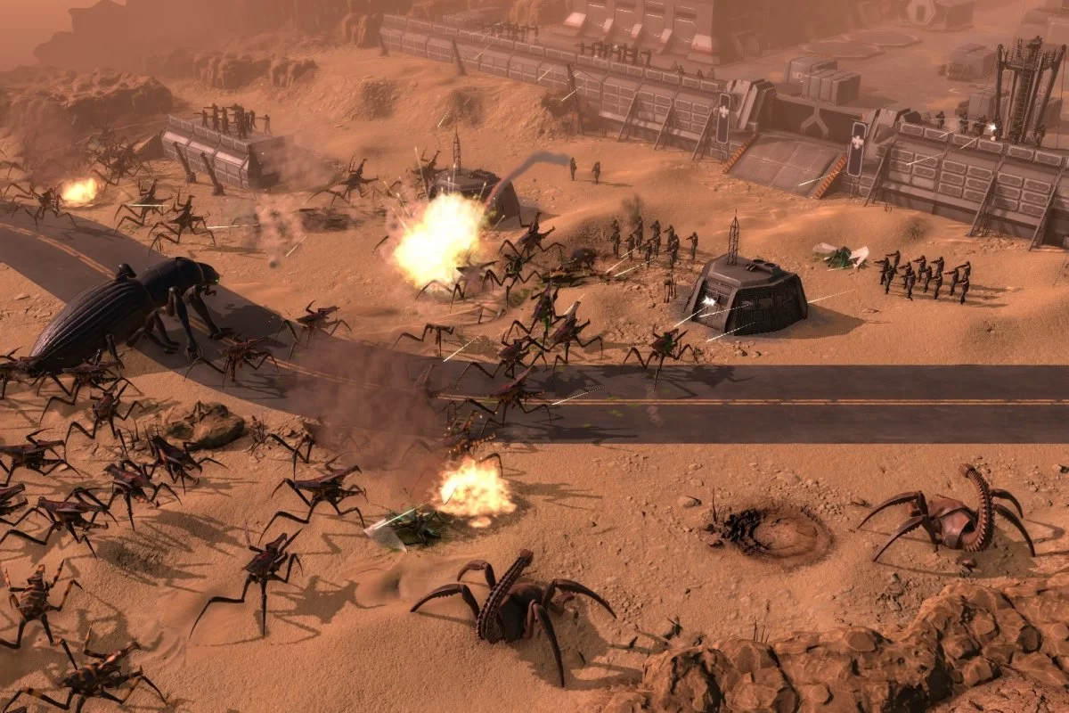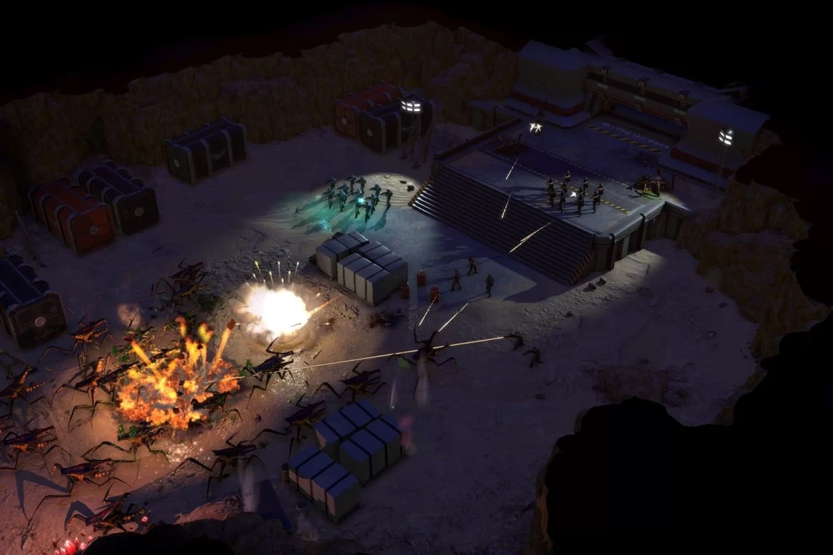 Отдельно стоило бы сказать о том, что в игре разработчики решили сделать большой упор на численность. жуков намного больше, чем людей, они побеждают за счет численности, а людей мало, и вам придется из-за этого постоянно следить за человеческим ресурсом. Чтоб одержать победу при явном количественном превосходстве противника, вам придется разрабатывать тактики стараться стрелять только из укрытий, создавай ситуации, в которых численность не будет играть большой роли, и не только. Например, вы сможете на одном из заданий закрыться на базе и с ее стен начать расстреливать ползущих отовсюду врагов.