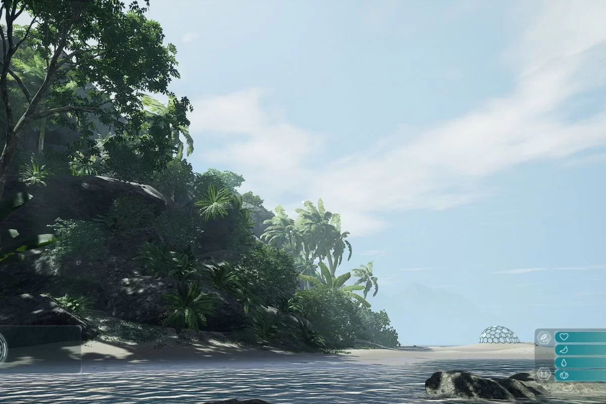 Не забывайте отслеживать показатели главного героя внизу экрана. Восполняйте голод найденным провиантом, пейте очищенную воду, а с наступлением темноты обязательно поспите, чтобы зарядиться энергией и подготовиться к следующему дню. Самая нижняя шкала отвечает за внутреннее спокойствие, которое со временем стремится к нулю. Для его восстановления потребуется найти гексагональную капсулу и приступить к медитации. Расслабьтесь и следуйте инструкции вместе с персонажем, делая глубокий вдох, а затем выдох и наблюдая за шариком, медленно скользящим по экрану.