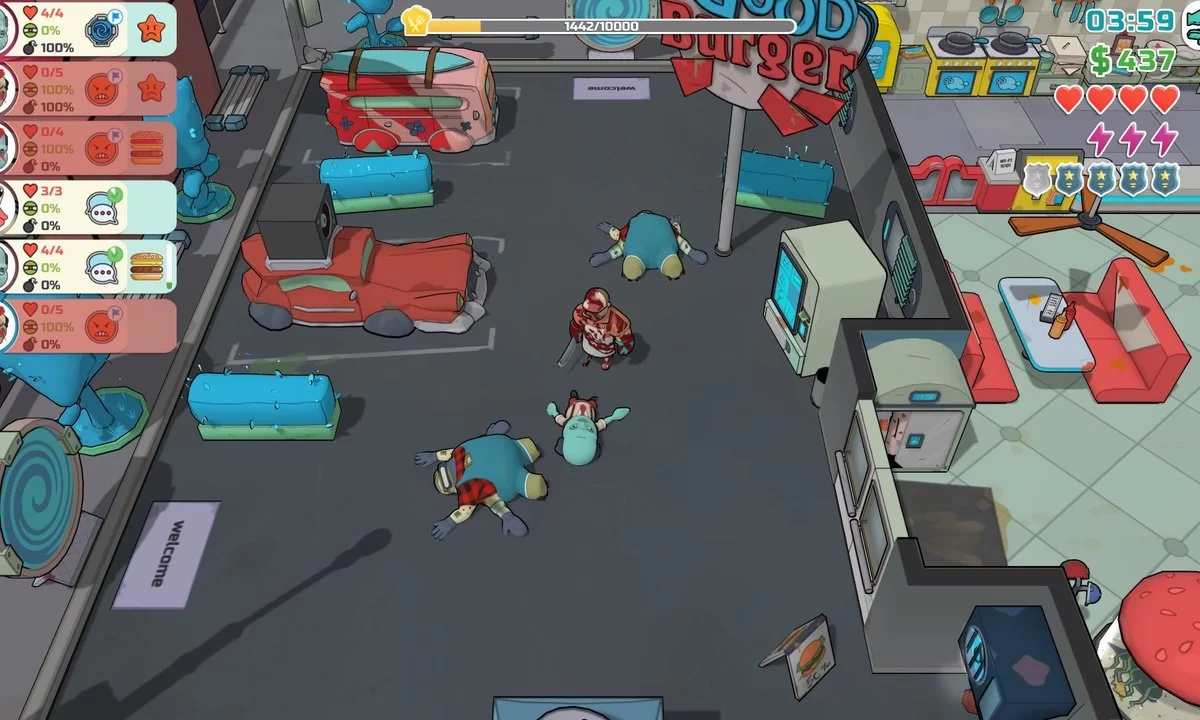 В Godlike Burger вы будете играть за смертоносного шеф-повара, который готовит лучшие бургеры во Вселенной. Ваш секретный ингредиент? Посетители! Управляйте рестораном, готовьте сочные бургеры и крошите инопланетян. Но осторожнее: хороший свидетель — это свидетель под соусом! В течение дня разные инопланетяне заглядывают в космический ресторан, чтобы попробовать те самые вкуснейшие бургеры. Ну, или умереть и стать фаршем. Морозилки-то сами себя не наполнят, верно? Вы можете расправляться с ними напрямую, полагаясь лишь на верный тесак, или воспользоваться арсеналом разнообразных ловушек — подойти к вопросу творчески. По ночам у вас будет время улучшить кухонную утварь и ловушки, запасти ингредиенты и приготовить секретные соусы. Есть чувство, что полиция начала что-то подозревать? Пора перегнать свой летающий ресторан к другой планете. Или пожертвовать на развитие родной полиции! В попытках создать лучшую бургерную в галактике на докучливых копов нет времени!