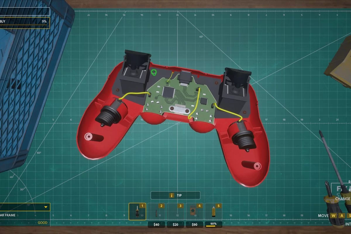 Мастерская. Ваша мастерская «умелые руки» находится в центре гаража. Вместо стандартных заказов ремонтируйте неработающие электроприборы, присланные клиентами. Получайте посылки, разбирайте устройства, заменяйте детали или ремонтируйте их.