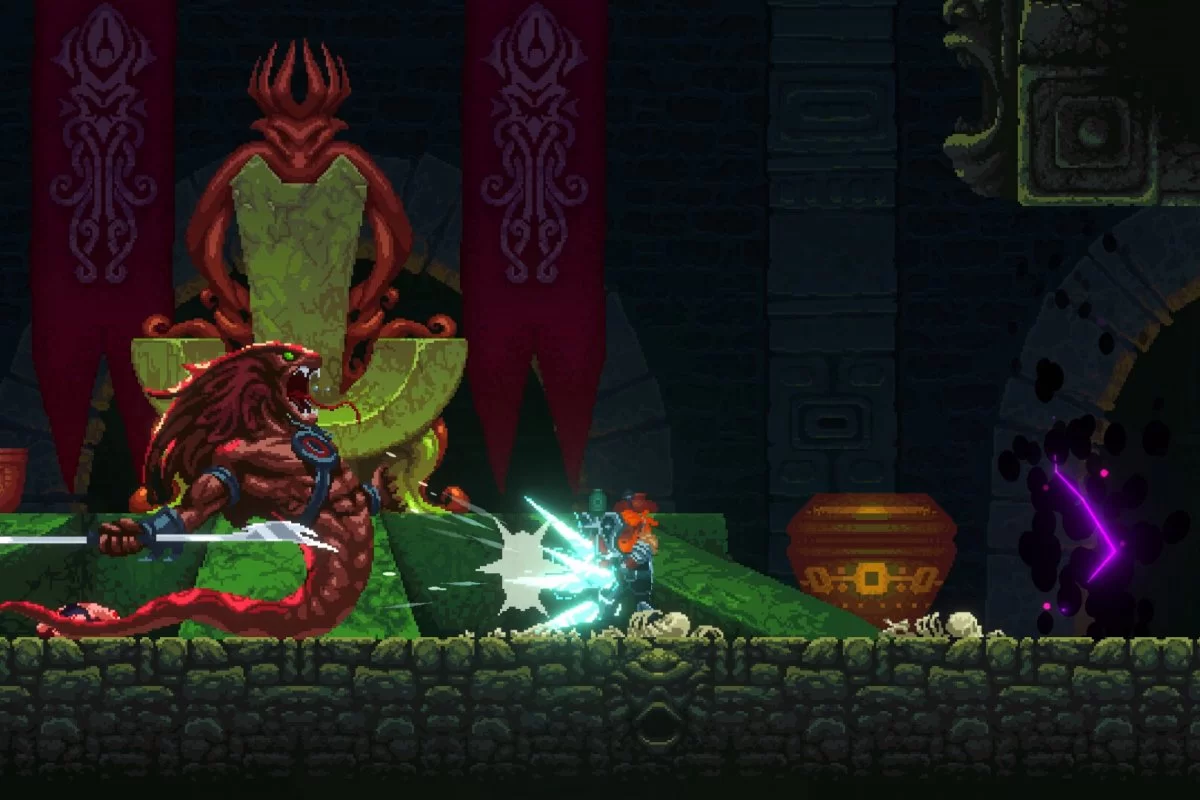 Изучайте детально прорисованный пиксельный мир, созданный в жанре «метроидвания» и населенный жуткими лавкрафтианскими созданиями, и наслаждайтесь мрачной атмосферой и уровнями, созданными вручную.