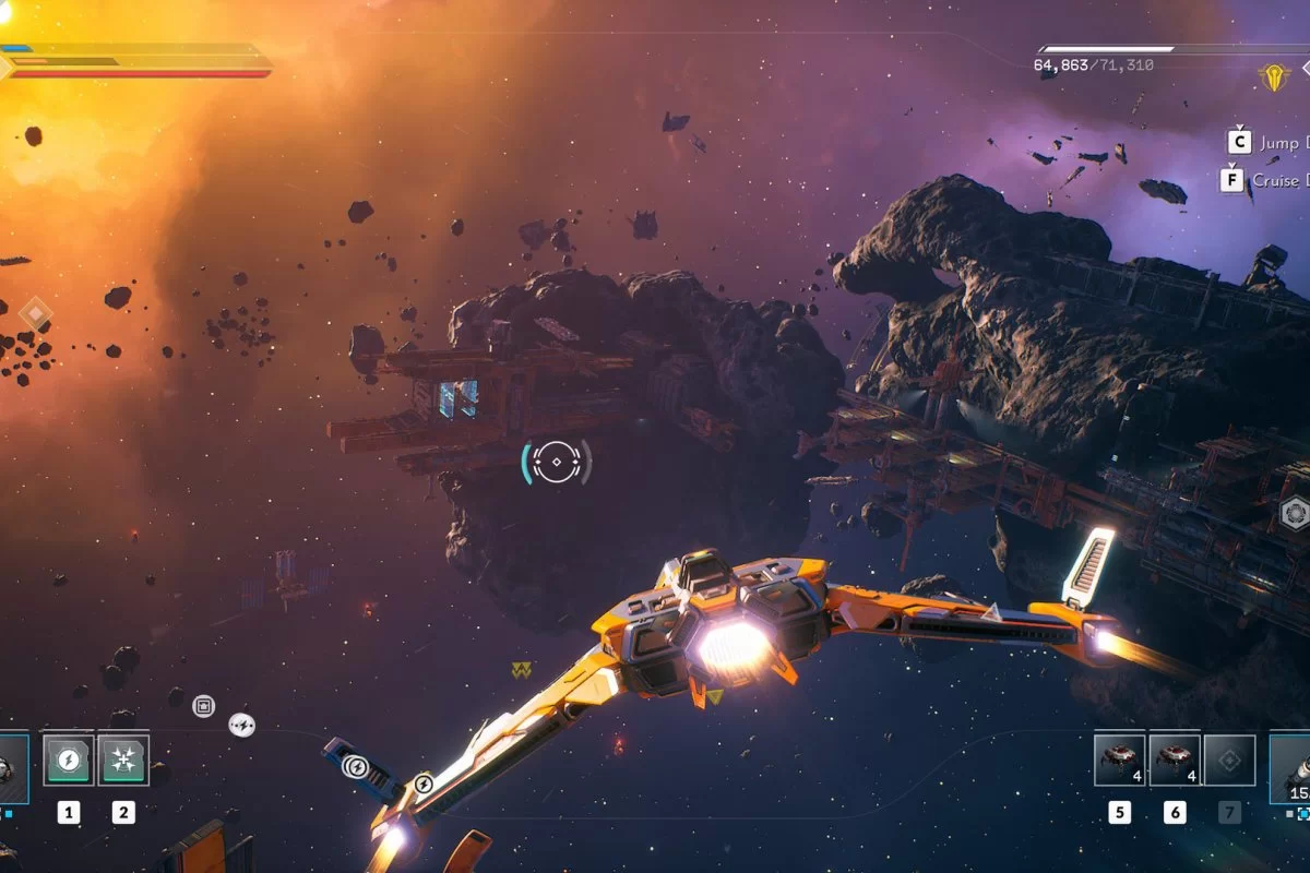 Самое же крутое в этой игре – огромный открытый космический мир, переполненный планетами, астероидами, спутниками планет, звездами, и не только. И вы сможете исследовать этот мир вдоль и поперек, блуждая между звездами и планетами, открывая для себя новые миры и секторы, сражаясь с космическими пиратами, и делая многое другое.