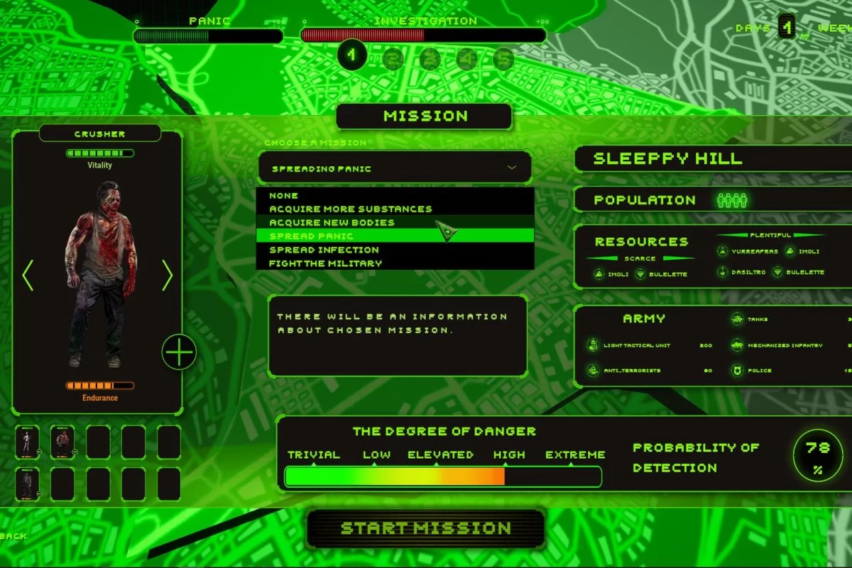 Запасы подходят к концу? Нужны новые подопытные? Пошлите плоды своей больной фантазии в город! Пусть принесут все необходимое. Сейте панику среди горожан, чтобы отпугнуть любопытных от своего убежища. Если вдруг на вас обратят внимание военные, отправьте им навстречу своих самых сильных монстров. Не дайте никому помешать вашей работе и создайте самый лучший мутаген!